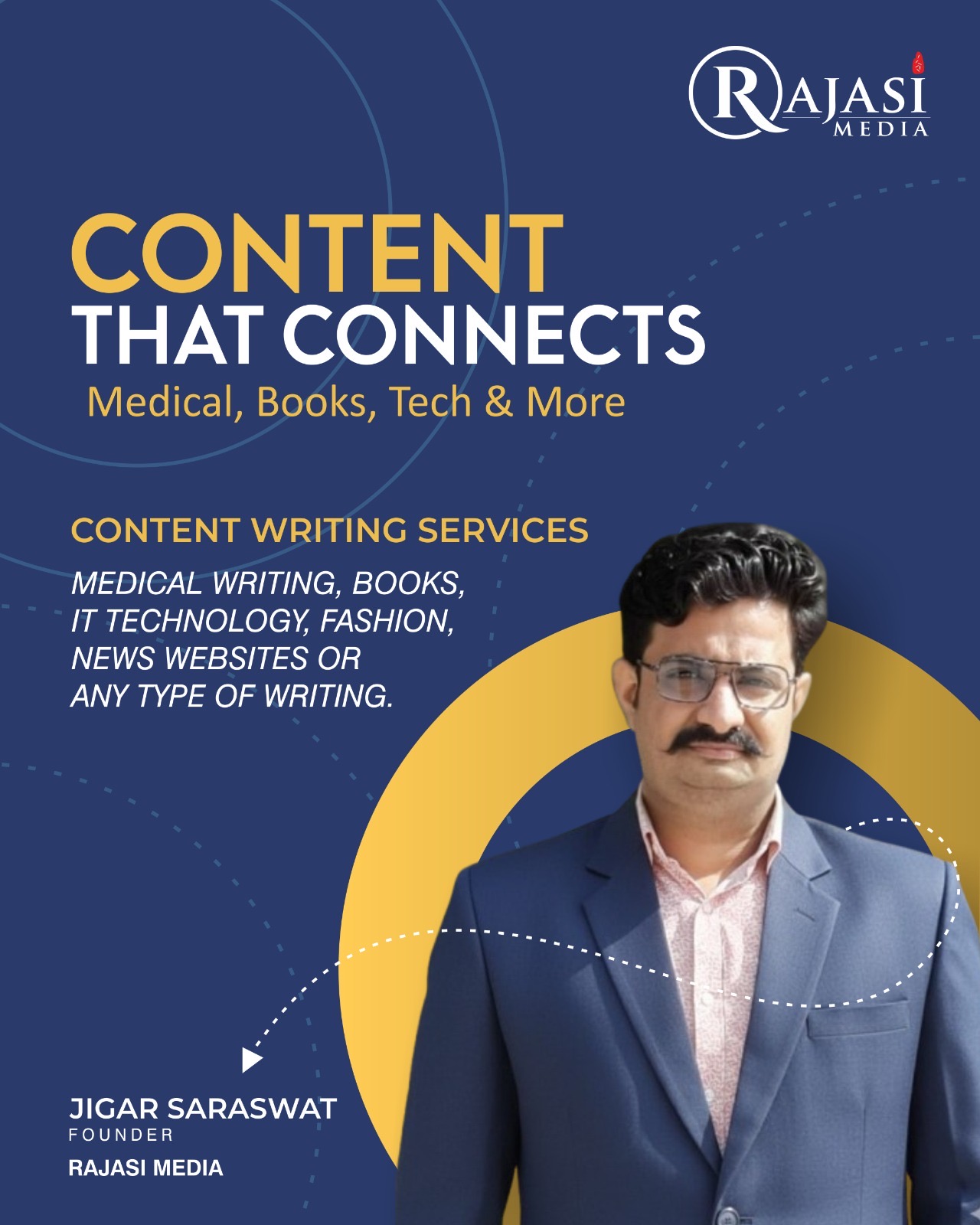 Considered to be a top content writer, Jigar Saraswat aimed for Rajasi Media to become India’s most trusted provider of content writing services, and it has already reached that position. One of the factors that has helped the company stand out is its commitment to high-quality content writing, crafted by experts, thoroughly researched, and customised to cater to the goals of every client.